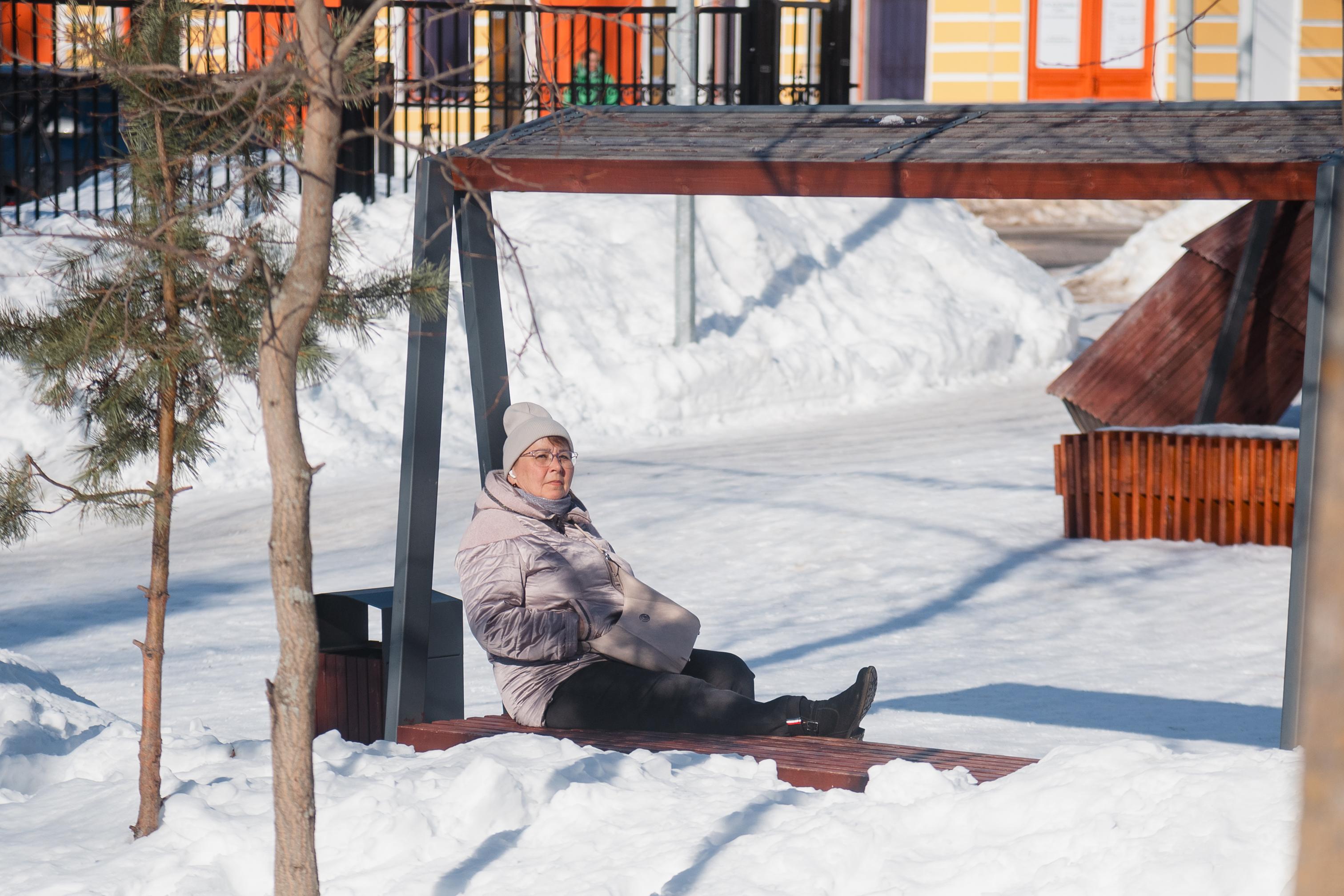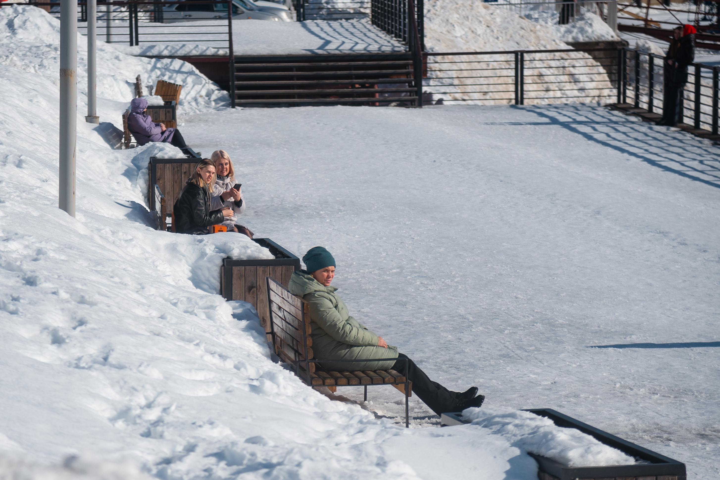 Погода в марте 2023 года оставалась по-настоящему зимней. Жители не расставались с тёплой одеждой, а на фотографиях виден след недавнего снегопада.