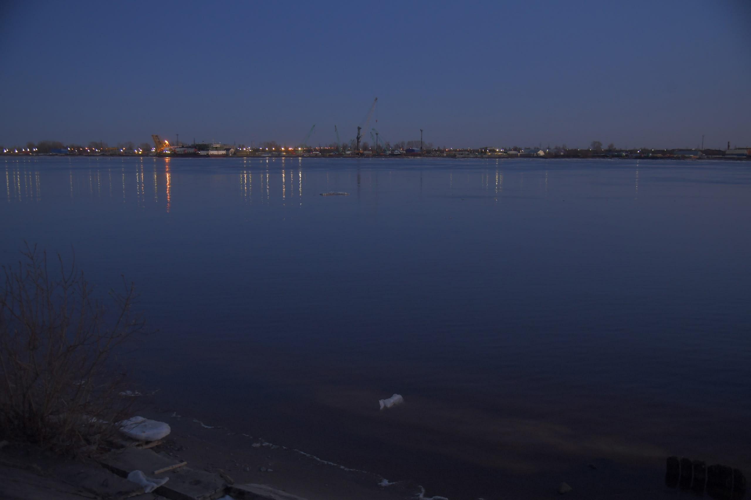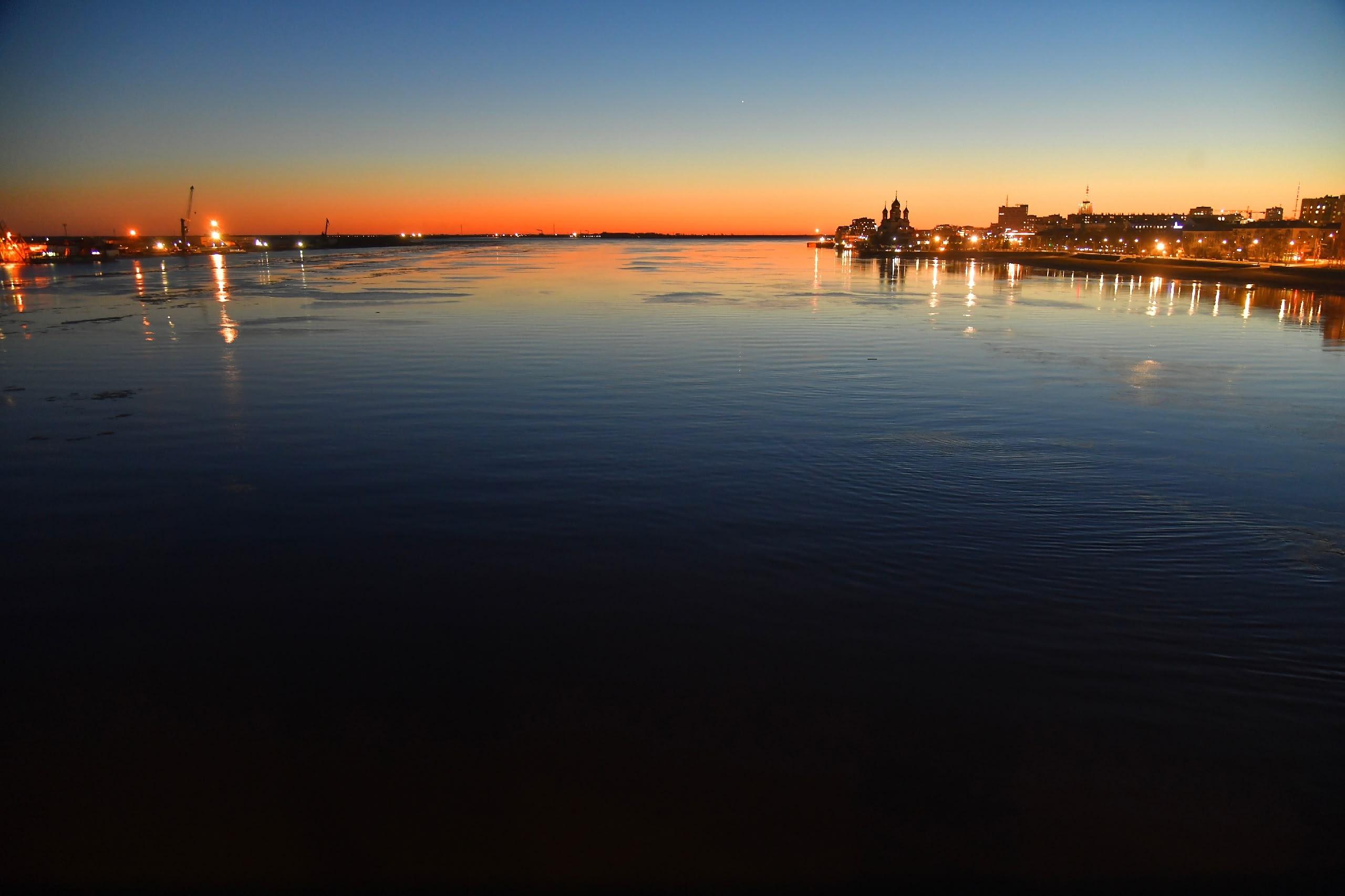 Наблюдатели сообщают о начале ледохода в Архангельске. Вчера в 19:45 у причала МРВ лед несло узкой полосой вдоль левого берега, унося его в Никольский рукав дельты.