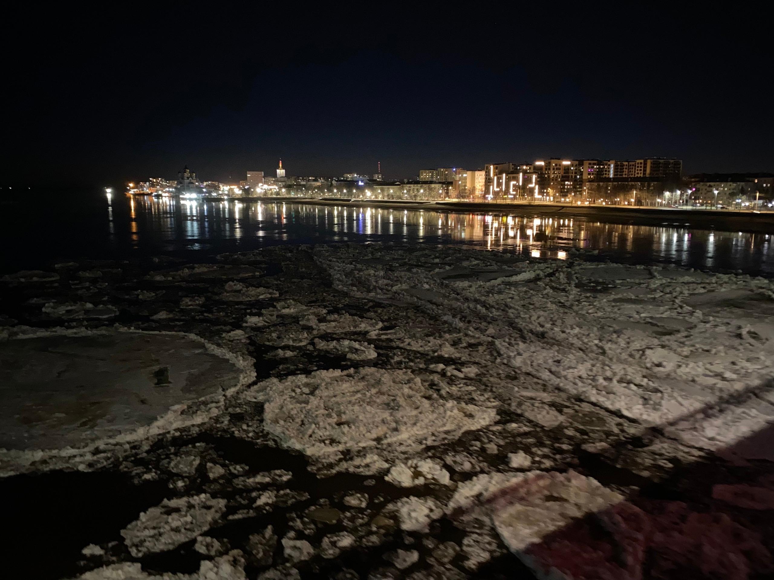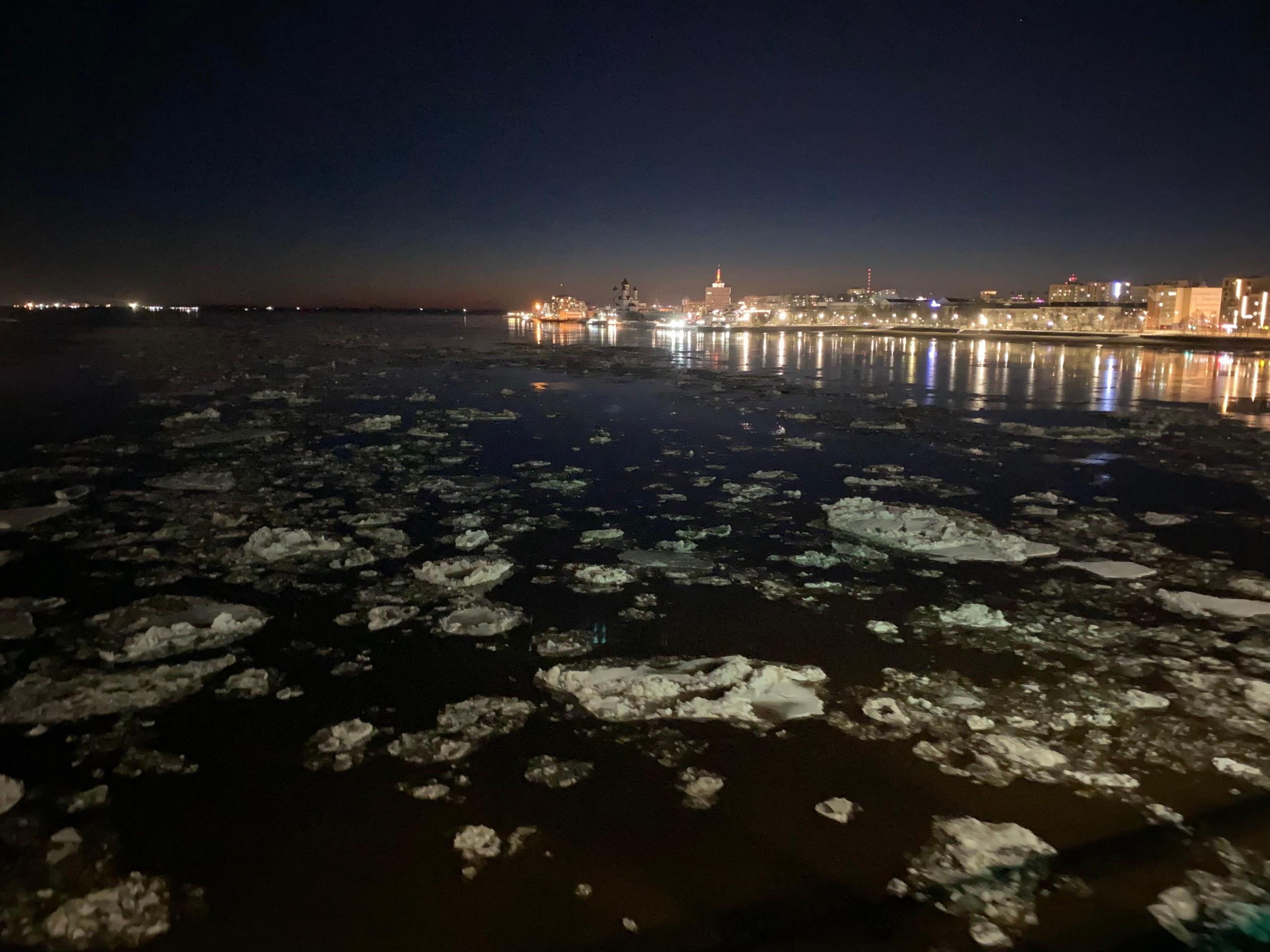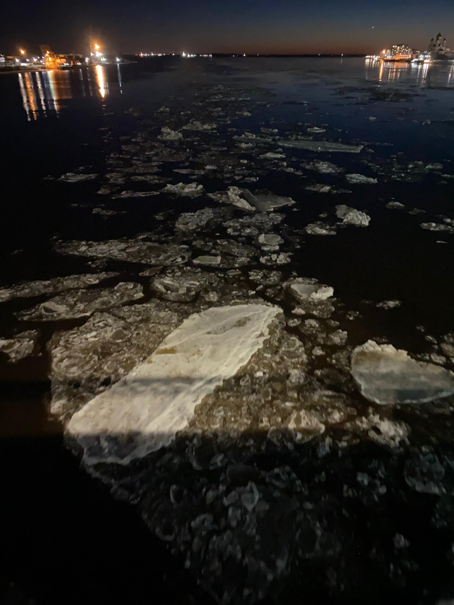 Вечером 8 апреля в 21:30 в центре Архангельска был зафиксирован ледоход. Льдины проплывали рядом с Северодвинским мостом, что сняли на видео.