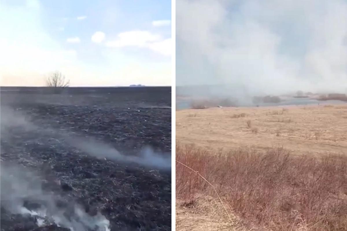 В Архангельской области тушили масштабный пал травы