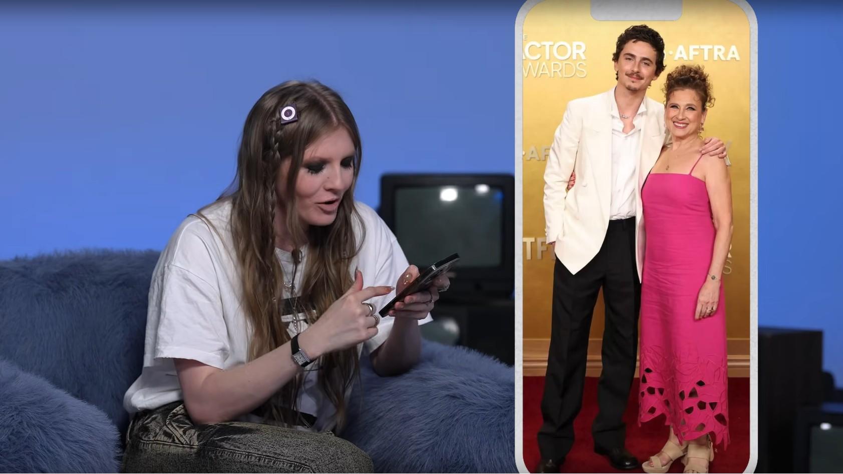 Также в студии обсудили наряды актера Тимоти Шаламе и его матери Николь Флендер. Розовое платье последней Чума связала с образами простых российских женщин: «У его мамы есть у предков белорусские корни. А потому — посмотрите на ее наряд. Это ж моя тетя Нина, она меня в усадьбе зовет есть малину».
