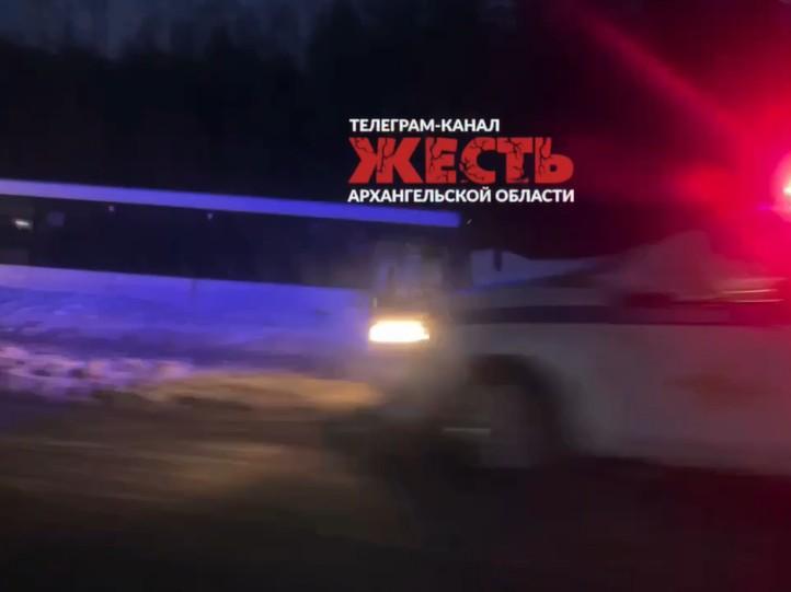 Автобус, съехавший в кювет недалеко от Новодвинска, предварительно столкнулся с автомобилем на встречной полосе. В салоне в тот момент находилось 16 пассажиров. Эти данные привели в УМВД по области.