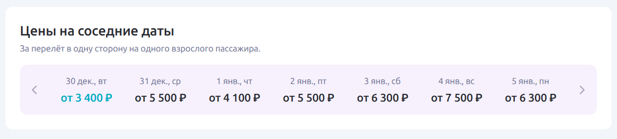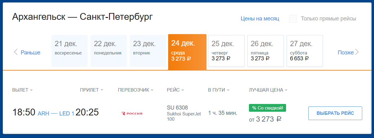У перевозчика «Россия» тарифы выше: перелет до Санкт-Петербурга обойдется как минимум в 3000 рублей. При этом к Новому году цена продолжает увеличиваться.