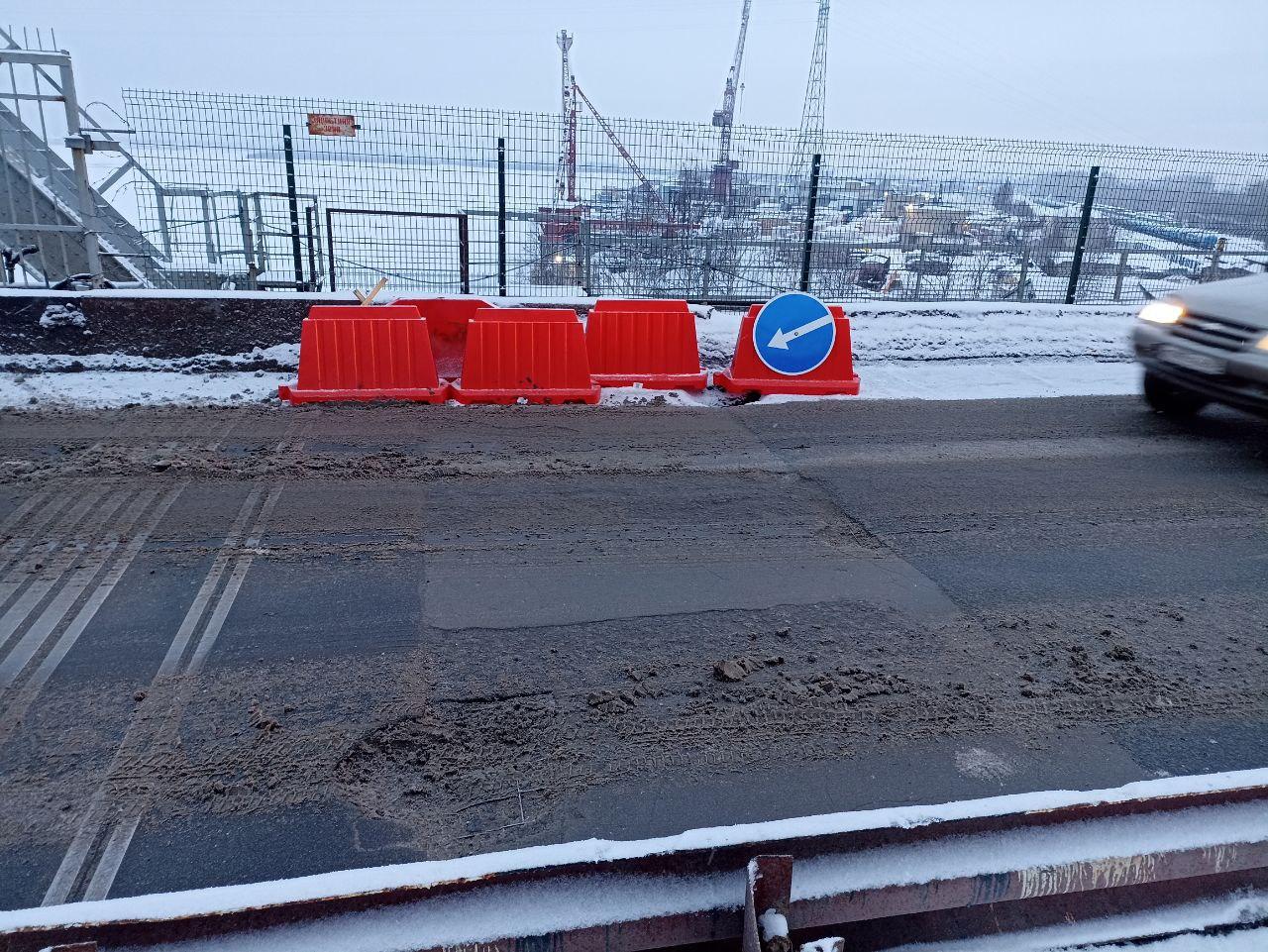 Со 2 января движение транспорта по мосту будет организовано по реверсивной схеме с использованием одной полосы.