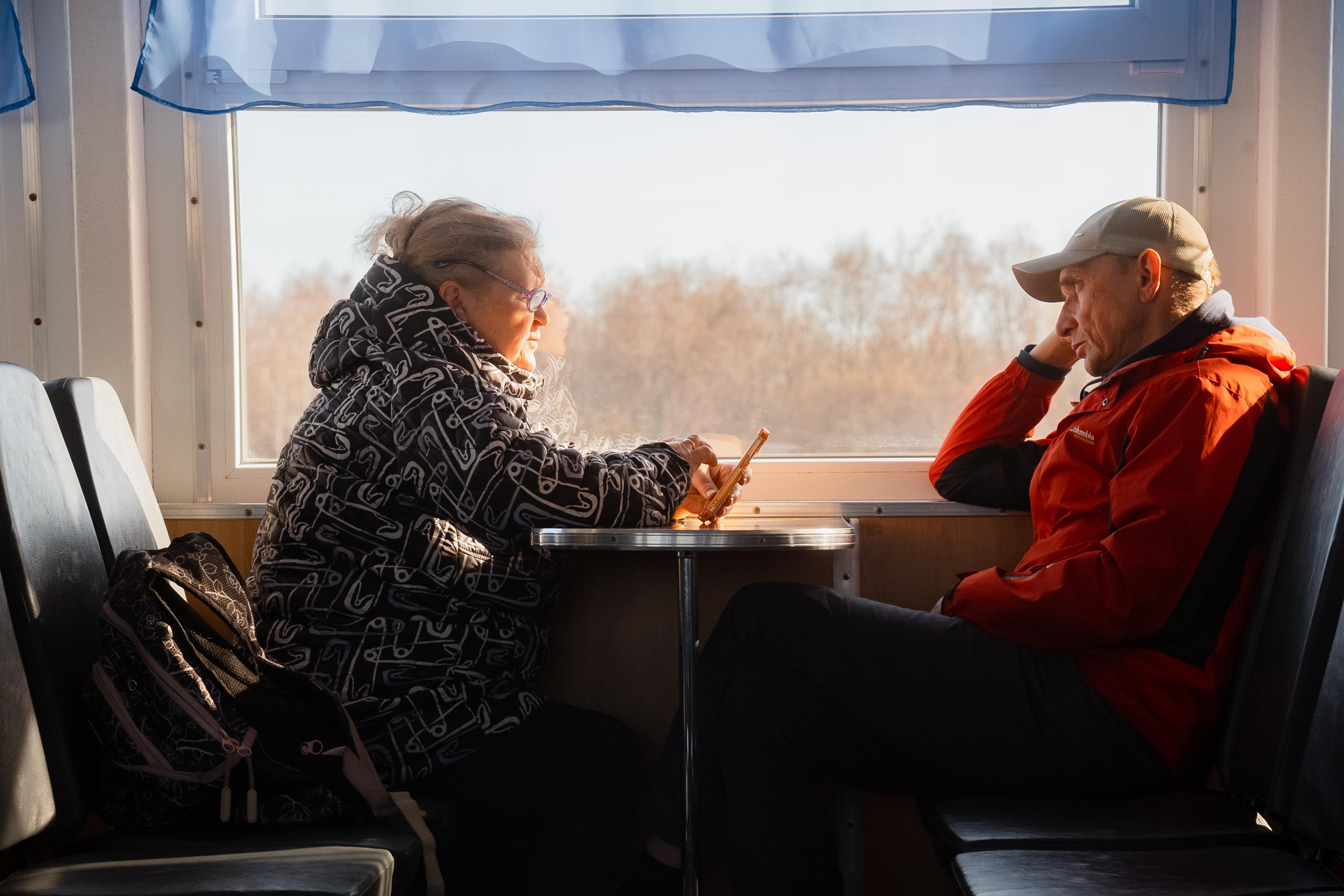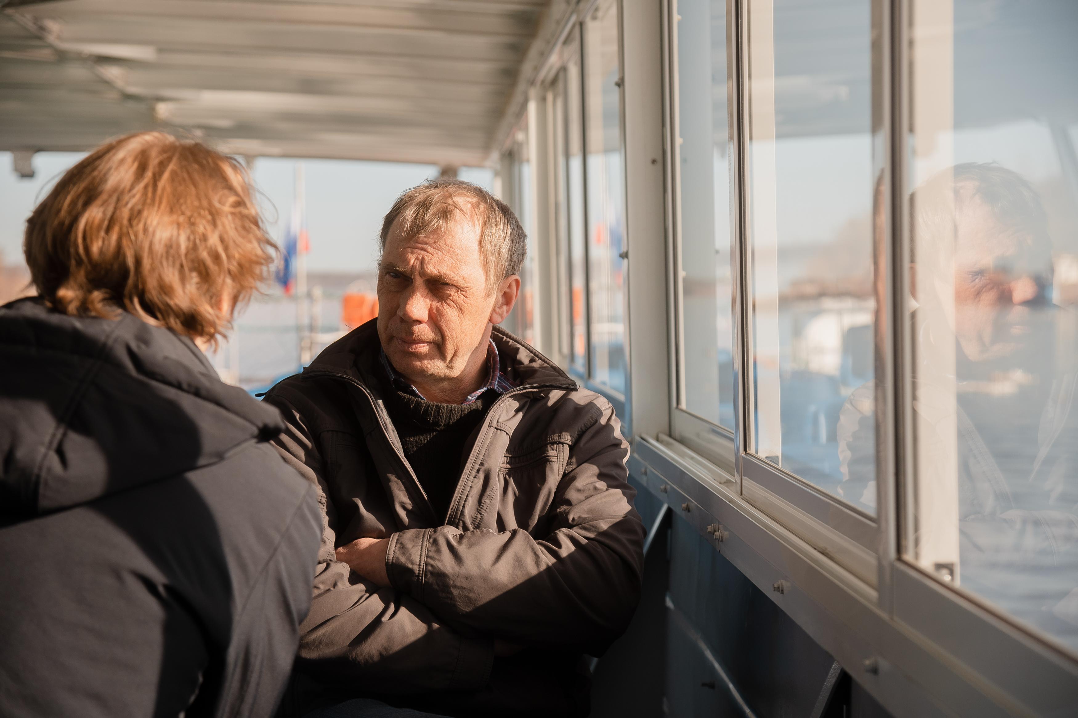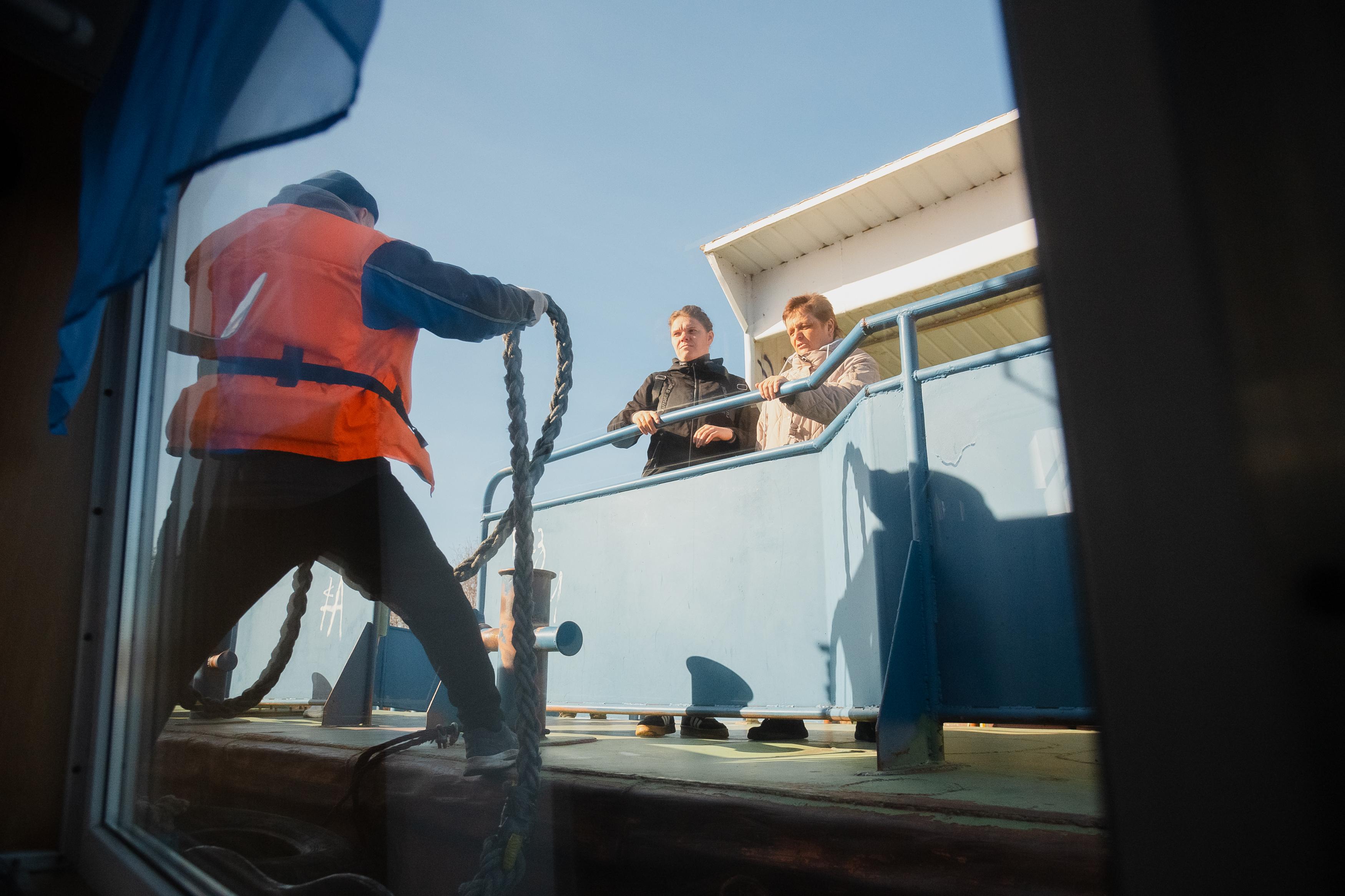 Лидия занимает должность матроса-кассира уже 21 год. Она знает в лицо многих жителей островных территорий. «На Хабарке, на Выселках многие круглый год живут. На Пустоши ездят в основном дачники. Наш теплоход для них сейчас единственная связь с городом», — пояснила она. В межсезонье люди используют буксиры, а зимой ходят по реке пешком.