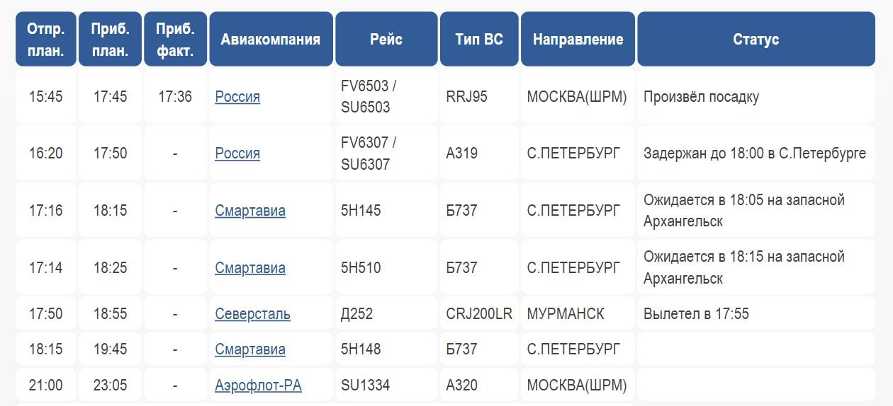 Табло прилётов в аэропорту Архангельска