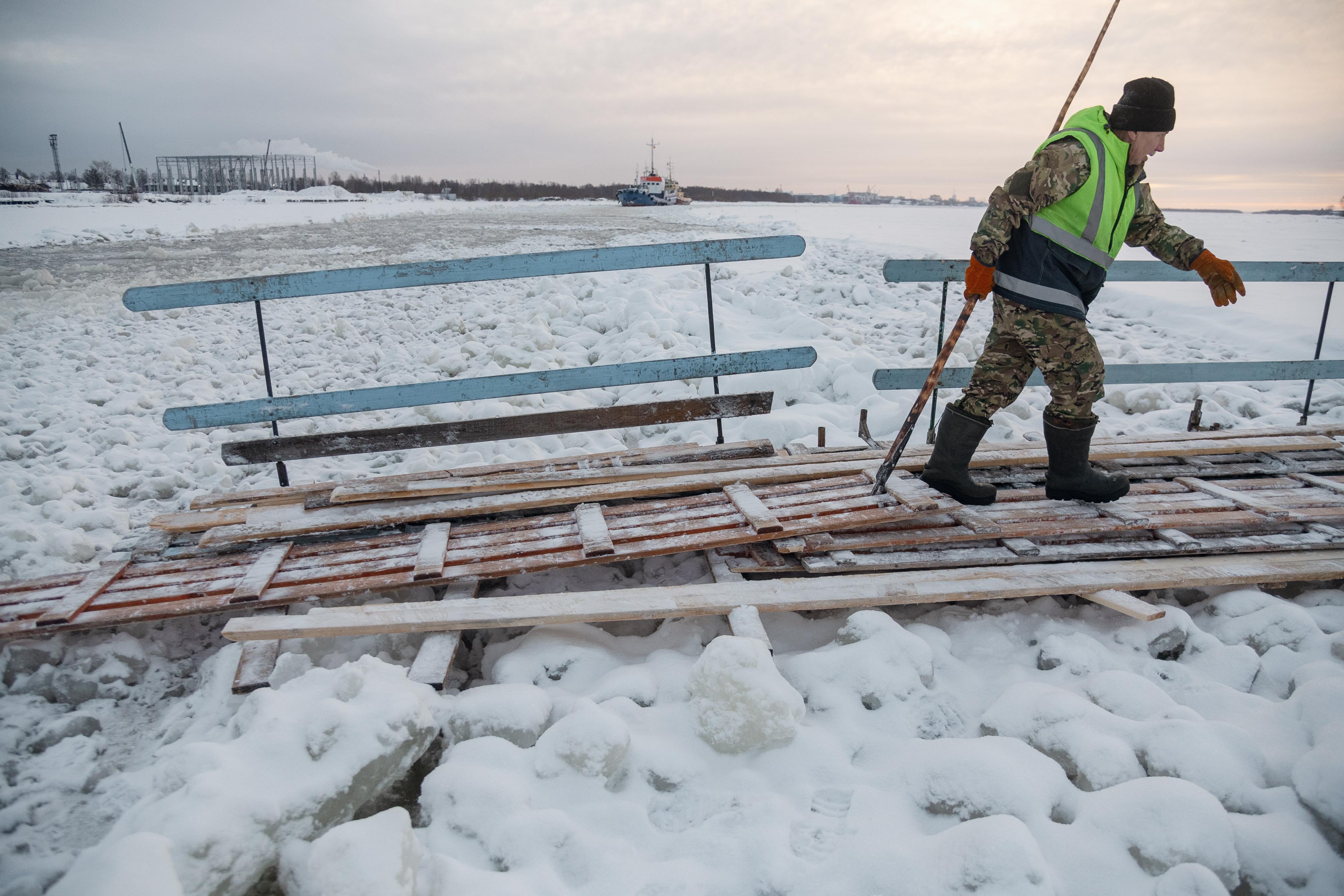 В Архангельске прекратила работу пешеходная ледовая переправа, соединяющая поселок Маймаксанского лесного порта и поселок 14-го лесозавода.