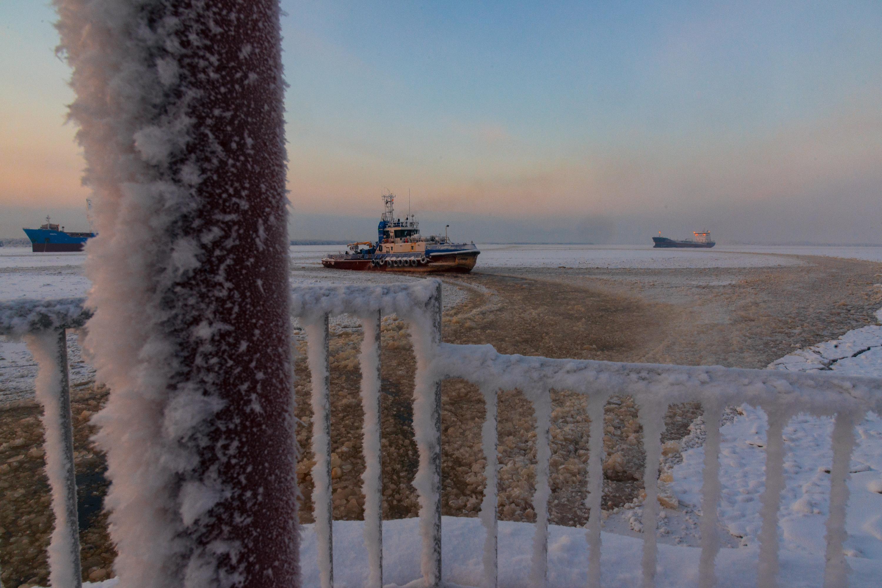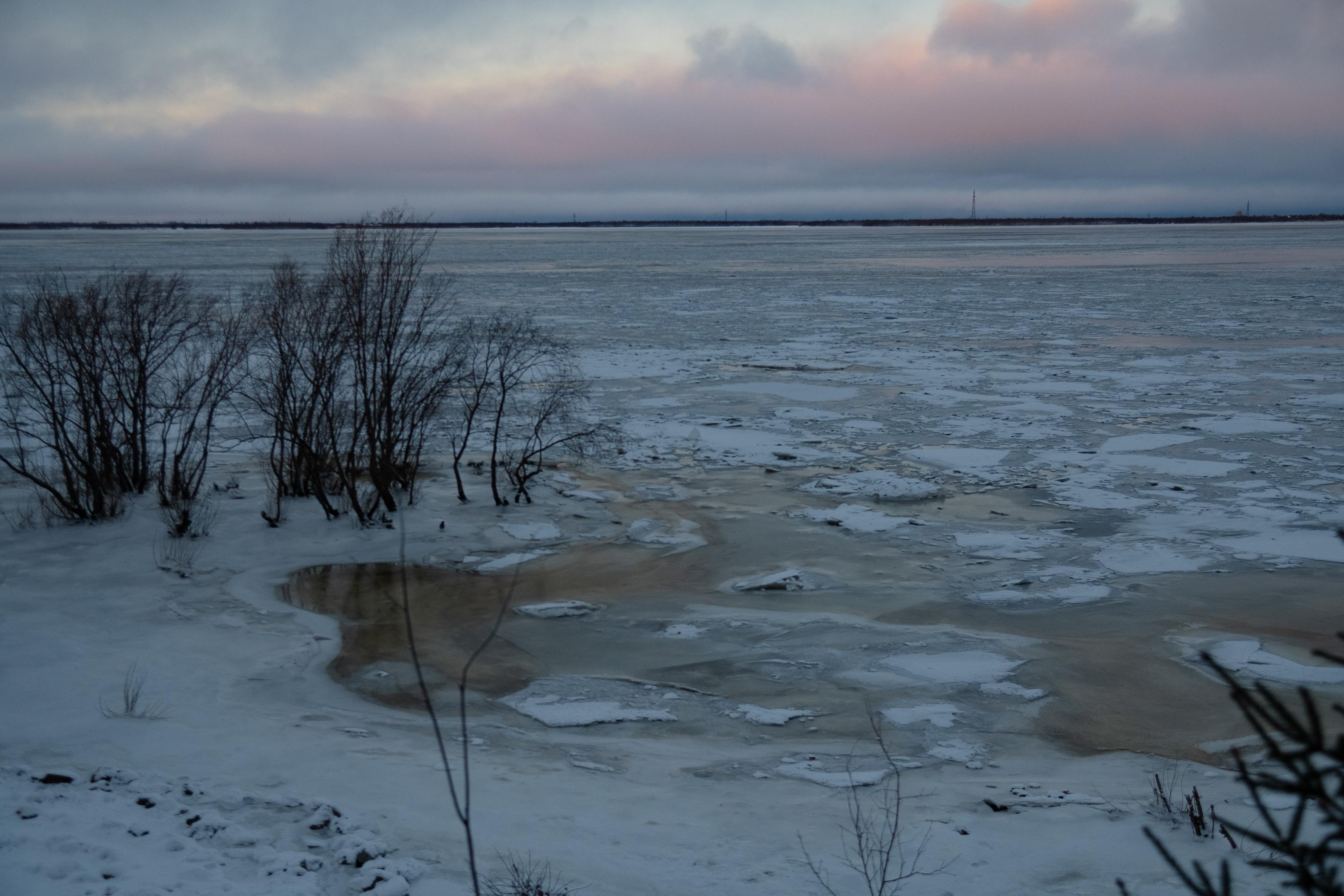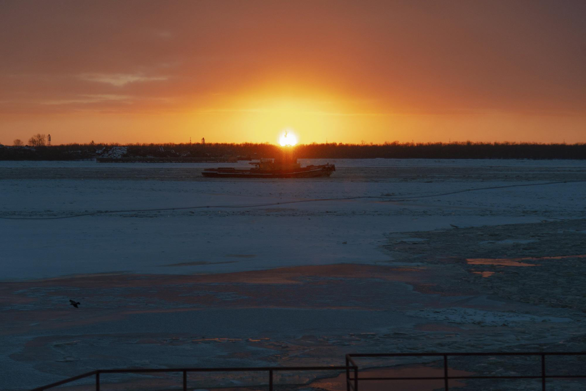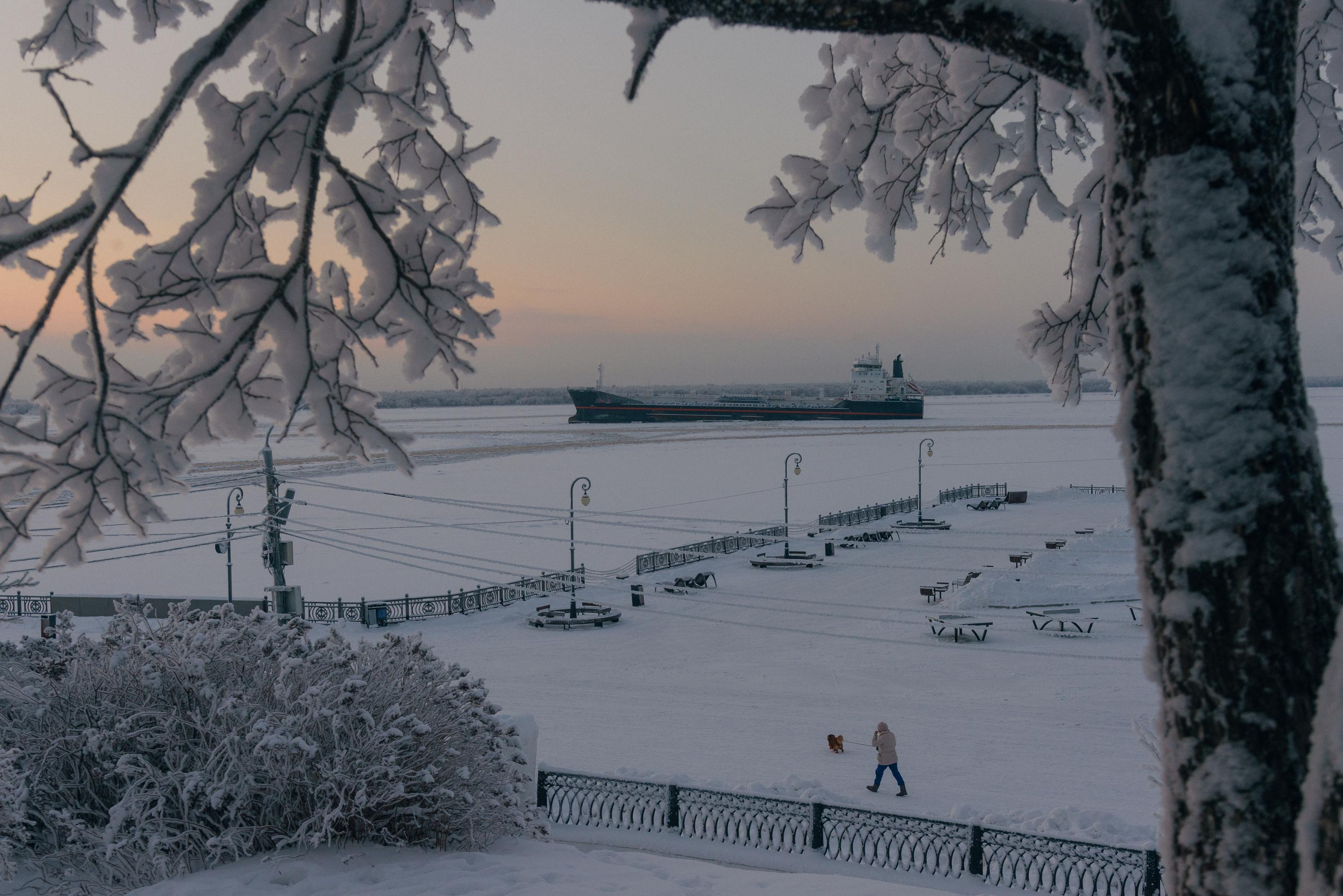 Декабрь 2021 года больше соответствовал зимнему сезону: снега было достаточно. Однако пешеходных переправ через реку ещё не организовали, и пассажиров перевозили на буксирах.