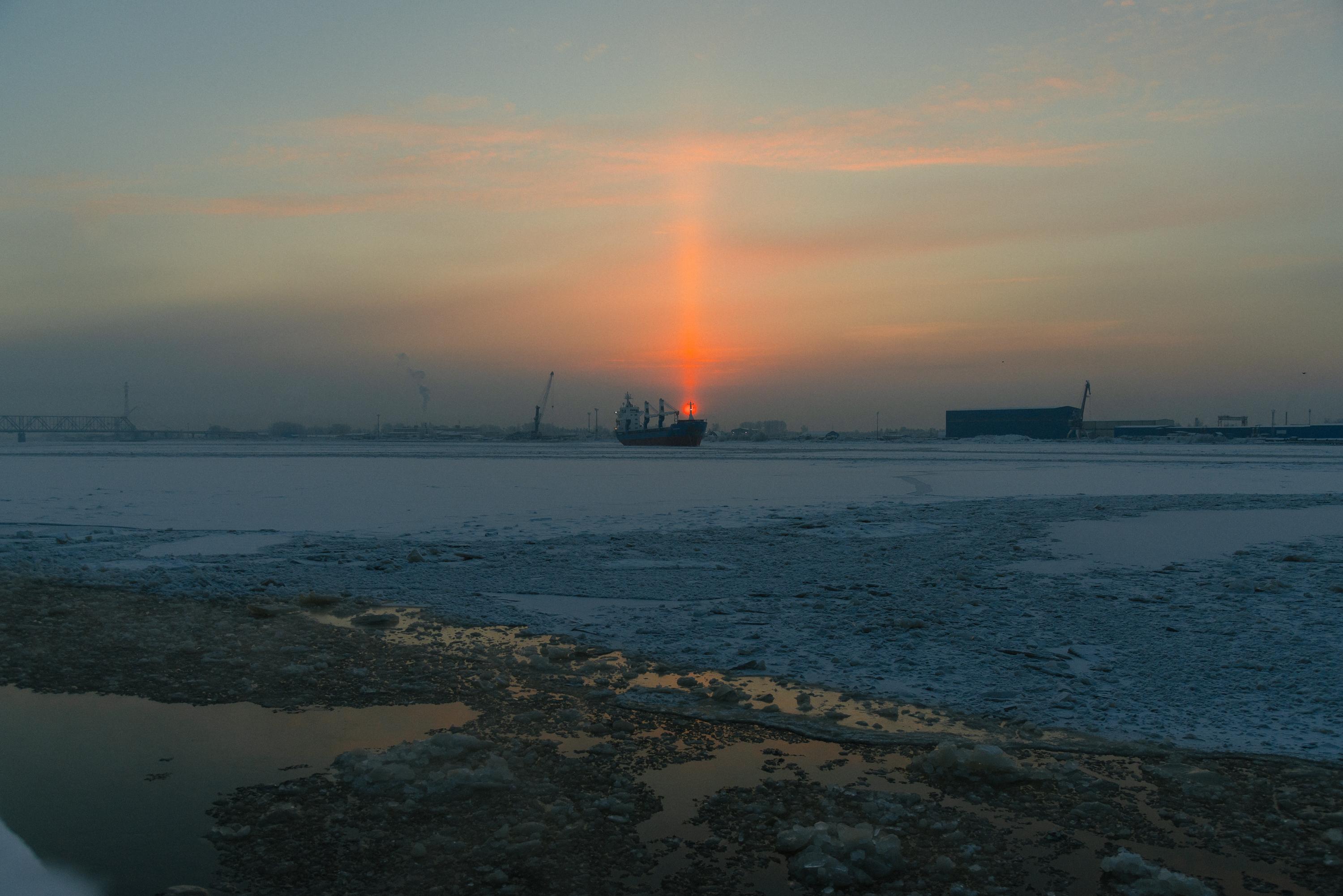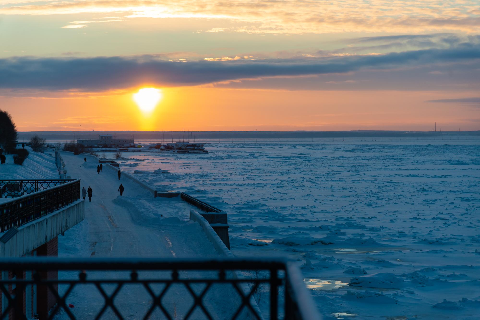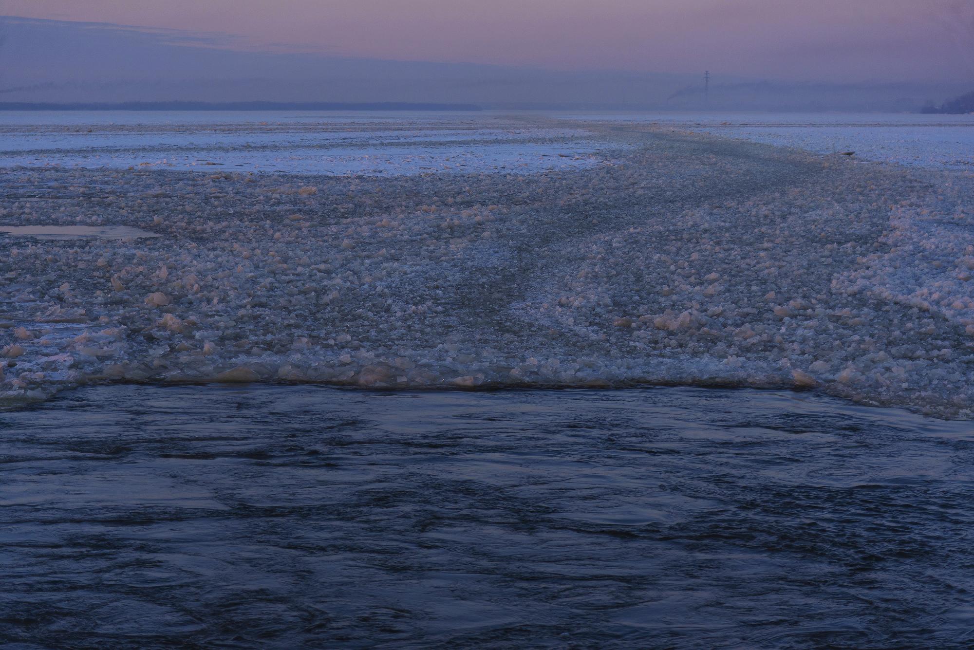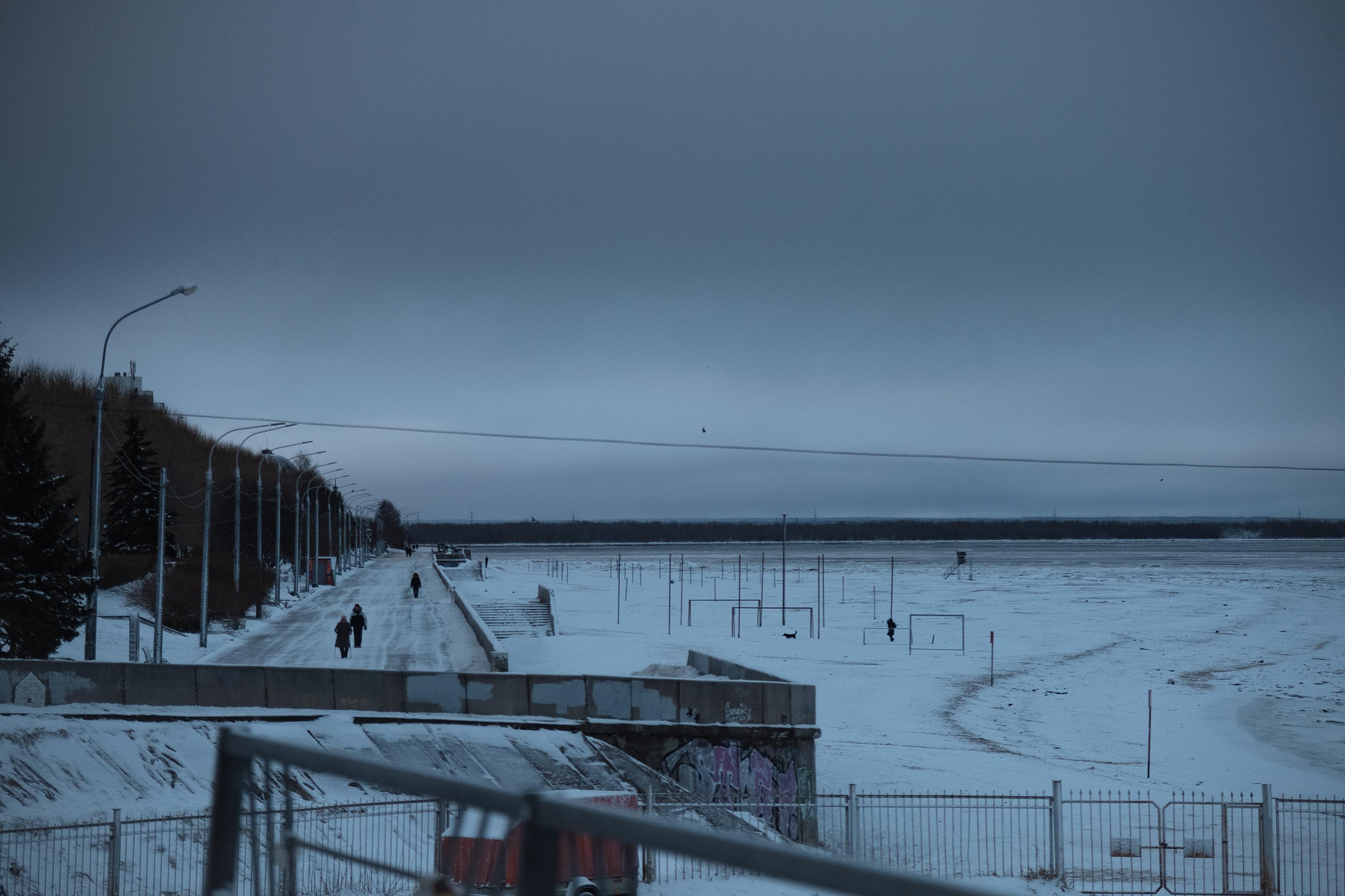 Декабрь 2021 года больше соответствовал зимнему сезону: снега было достаточно. Однако пешеходных переправ через реку ещё не организовали, и пассажиров перевозили на буксирах.