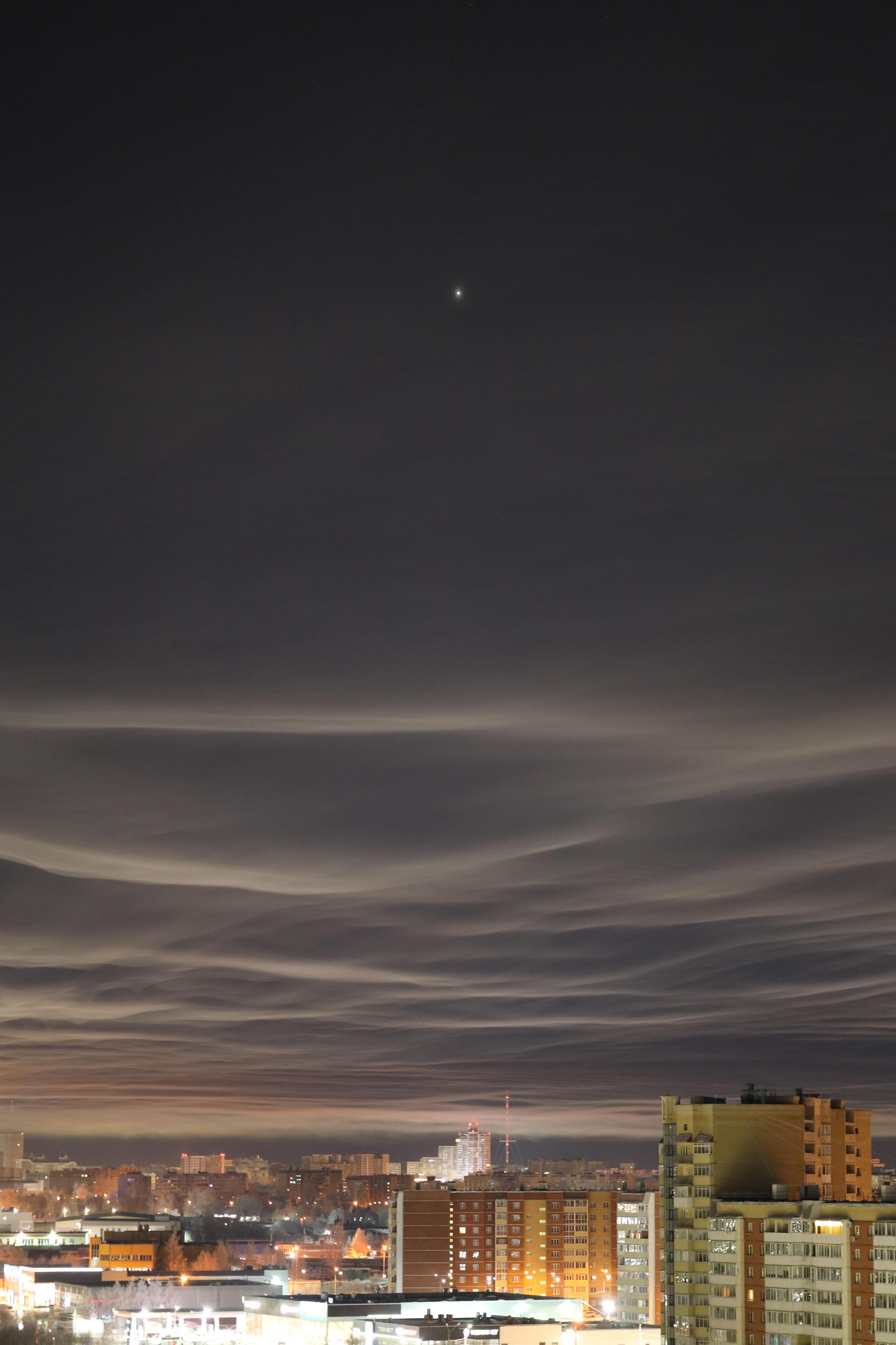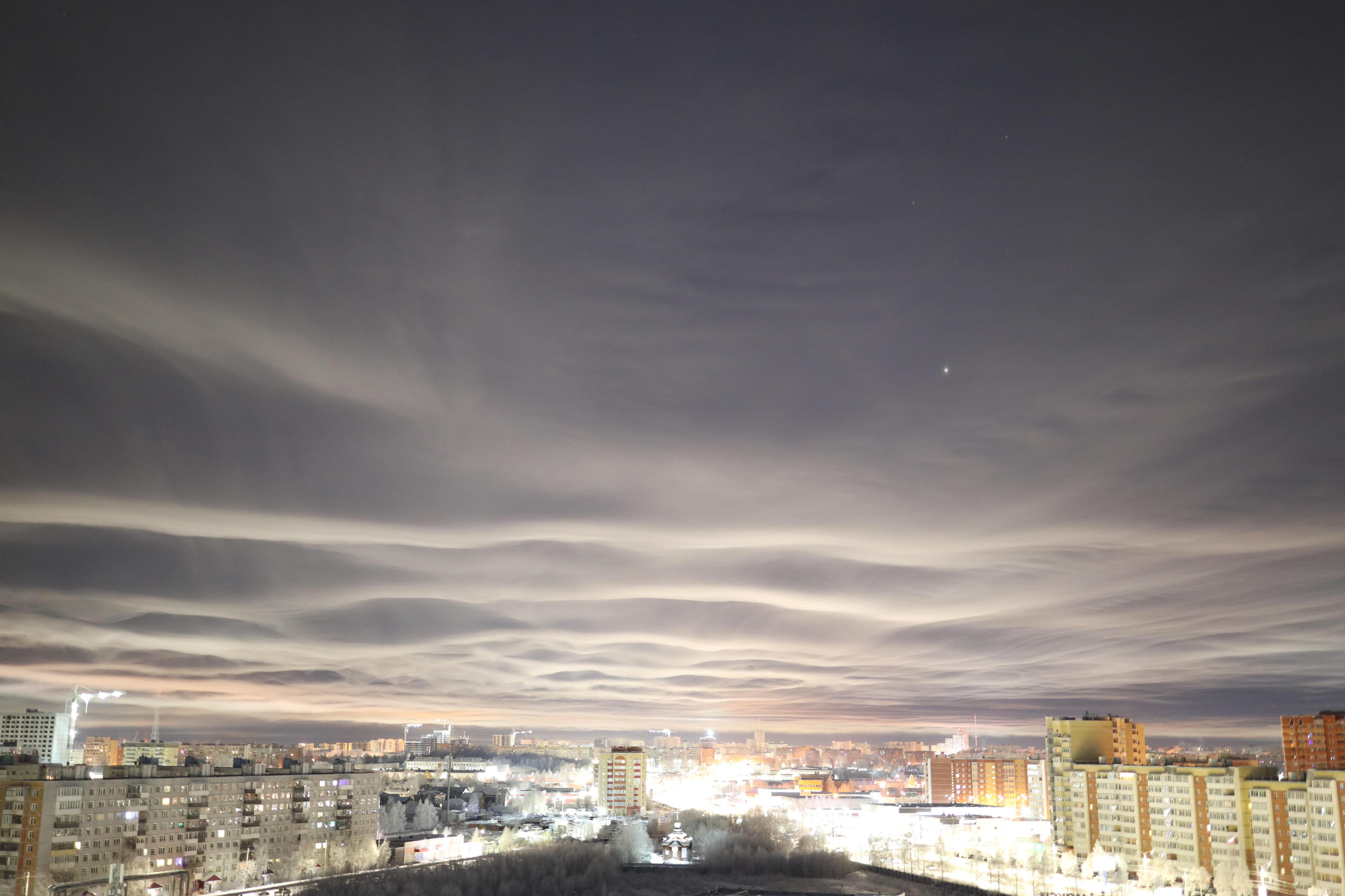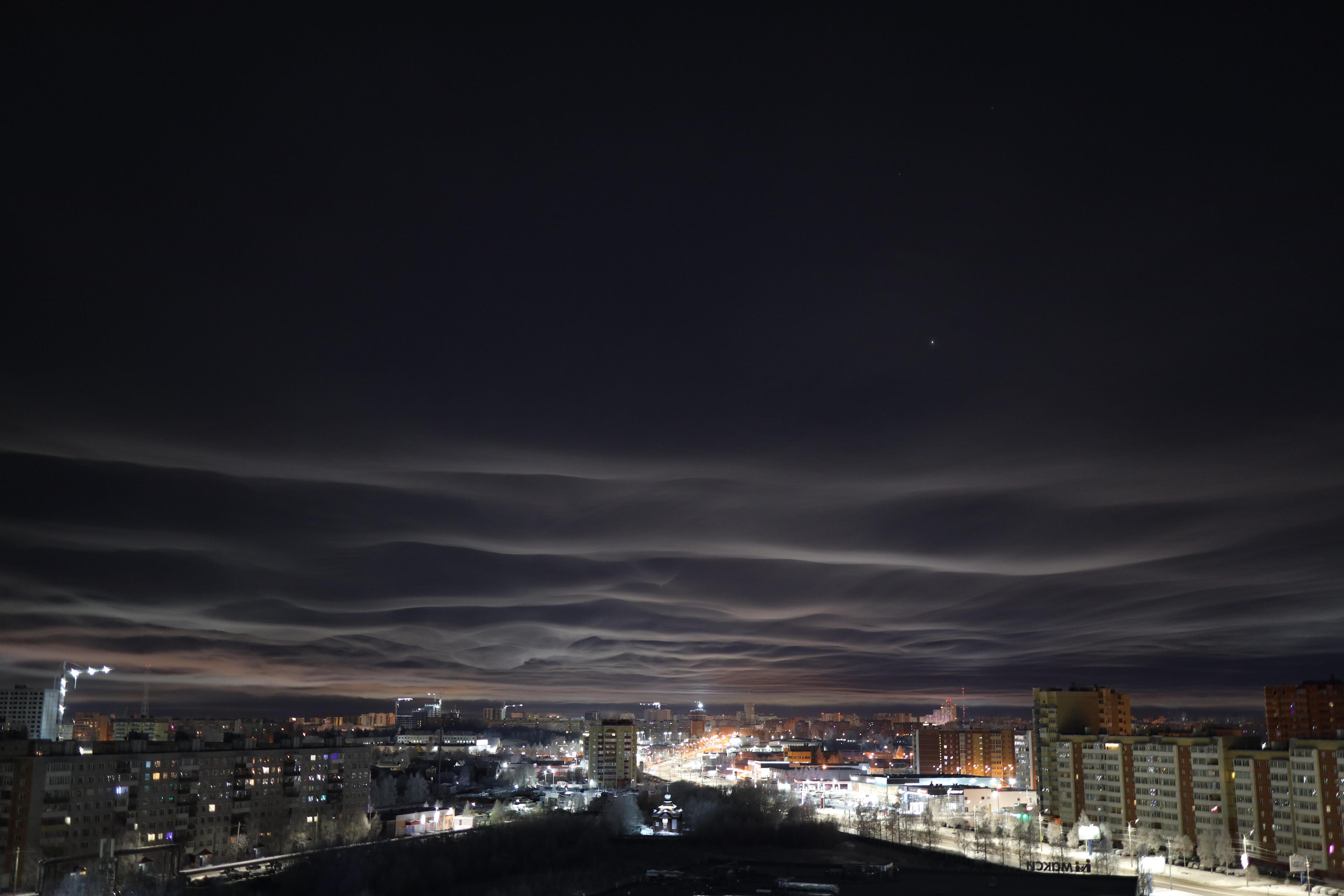 В Архангельске в ночные часы можно было наблюдать живописное скопление облаков, которое создавало впечатление перевёрнутой холмистой равнины. Эти кадры сделал астроном-любитель Вячеслав Заваринский, предоставивший свои фотографии для публикации.