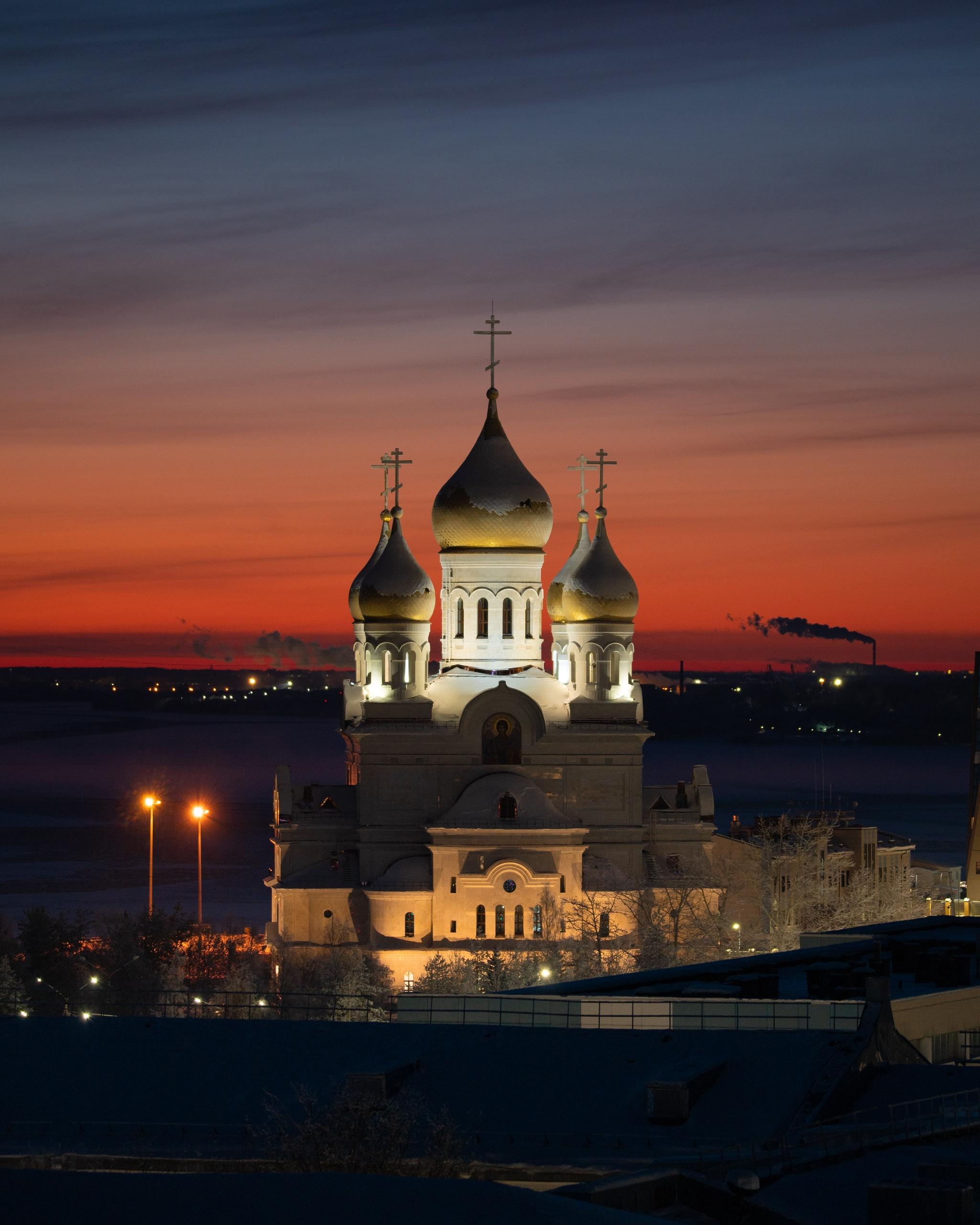 Вечером 2 февраля в Архангельске на закатном небе была отлично видна яркая луна.