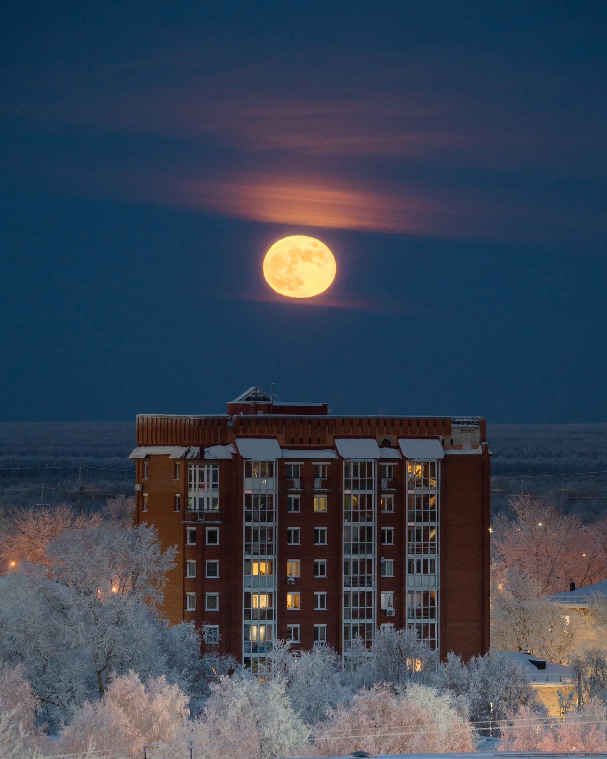 Житель Архангельска Захар Хаванов опубликовал фотографии яркой луны, снятые 2 февраля.