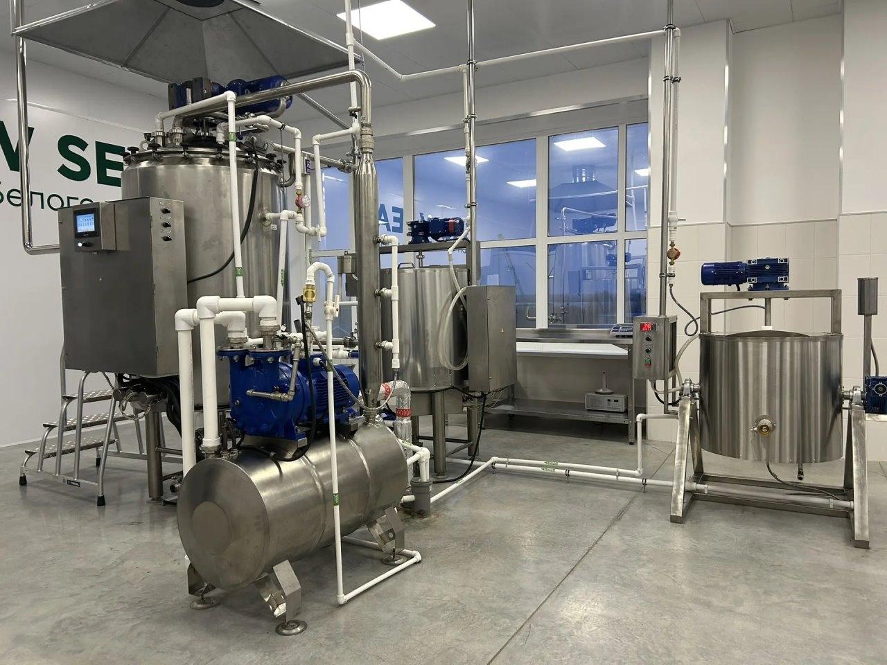 «В нашей вакуум-выпарной установке мы нашу ламинарию загружаем с дополнительными компонентами, — объясняет начальник косметического производства АВК, Ирина Баранова. Через загрузочную воронку у нас попадает сырье в котел, которое проваривается определенное количество времени при заданной температуре»